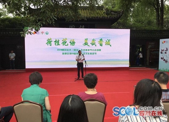 四川在线消息(记者 陈昊 摄影报道)香城新都,又到荷桂飘香季。6月26日,2019年四川花卉(果类)生态文化旅游节分会场暨新都第25届荷桂生态文化旅游节在国家AAAA级旅游景区——宝光桂湖文化旅游区桂湖公园开幕。