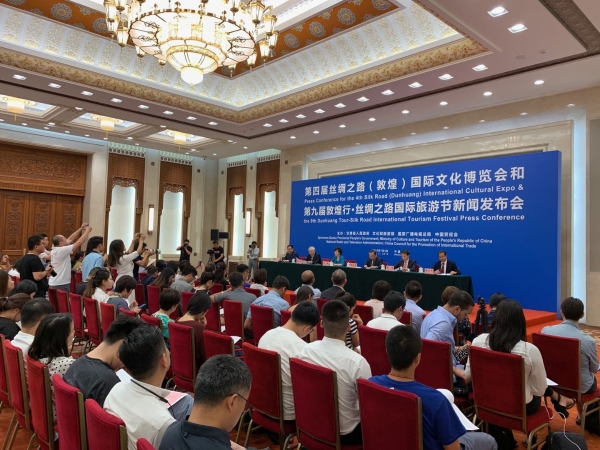 7月3日,第四届丝绸之路(敦煌)国际文化博览会和第九届敦煌行·丝绸之路国际旅游节(简称“一会一节”)新闻发布会在北京人民大会堂举行。甘肃省副省长何伟出席发布会并介绍“一会一节”筹备情况。作为丝绸之路(敦煌)国际文化博览会的共同主办单位,文化和旅游部、国家广播电视总局、中国贸促会相关负责人分别介绍了各自支持和参与“一会一节”相关情况。发布会由甘肃省政府新闻办公室主任郭锦诗主持。