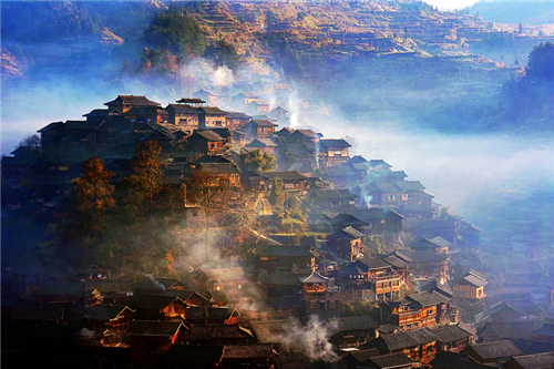 西江苗寨吊脚楼建筑群风光 杨光才/摄
